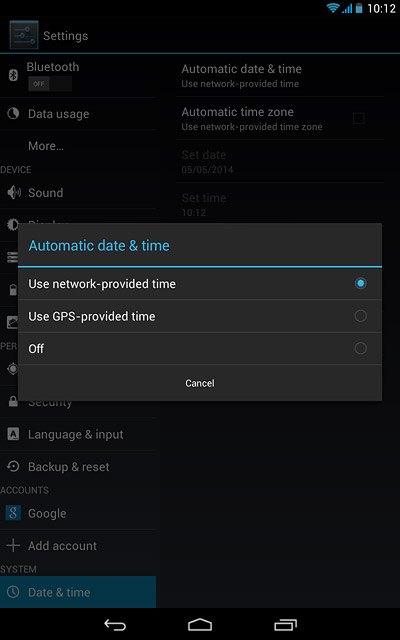 If you want to set the date time manually, you need turn off automatic date and time update and press Set date and Set time. Follow the instructions on the display to set the date and time manually.