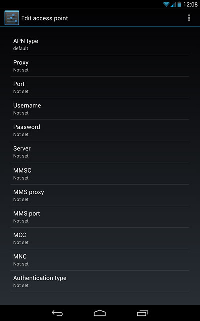Press default until the APN type has been selected.