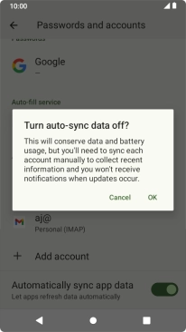 Press the indicator next to "Automatically sync app data" to turn the function on or off.