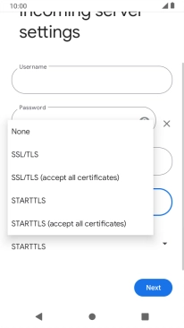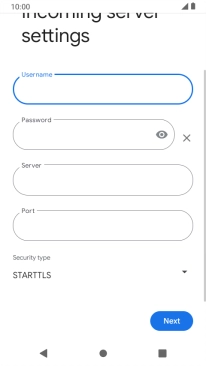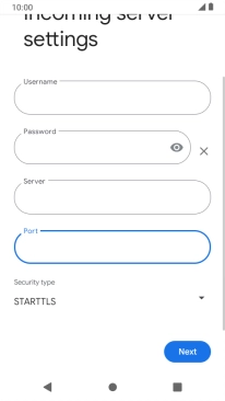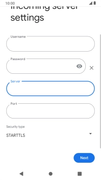 Press the field below "Server" and key in the name of your email provider's incoming server.