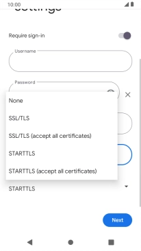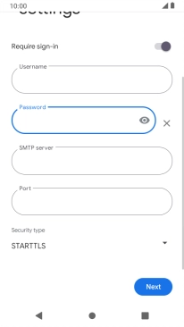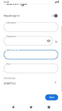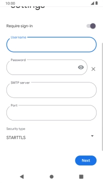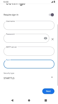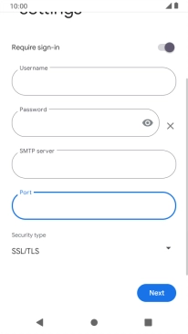 Press the indicator next to "Require sign-in" to turn the function on or off. Please note that if you're using Vodafone's outgoing server, turn off SMTP authentication and leave the username and password fields empty.