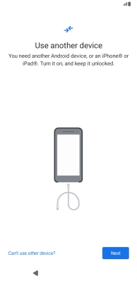 If you have a cable which can connect the two phones, insert the cable and follow the instructions on the screen to transfer content to your phone. If you don’t have a cable, press No cable?.