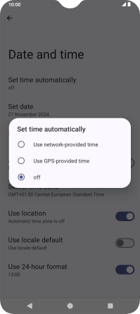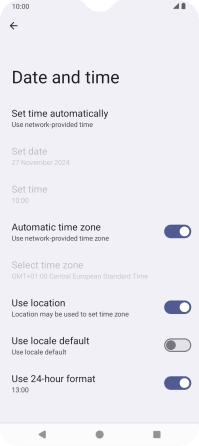Press the indicator next to "Automatic time zone" to turn on the function.