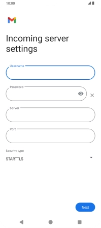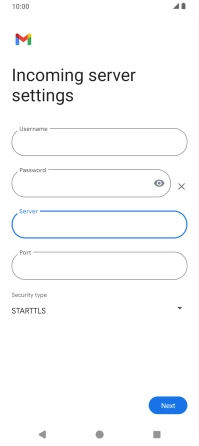 Press the field below "Server" and key in the name of your email provider's incoming server.