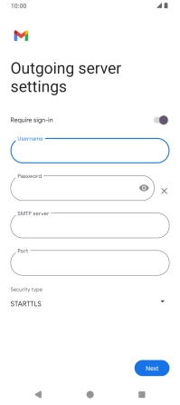 Press the field below "Username" and key in the username for your email the email provider's outgoing server.