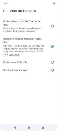 If you turn on limited update of apps via mobile network, your most used apps are automatically updated via the mobile network when no Wi-Fi networks are within range.