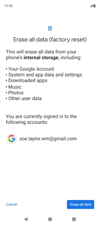 Press Erase all data. Wait a moment while the factory default settings are restored. Follow the instructions on the screen to set up your phone and prepare it for use.