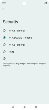 Press WPA3-Personal to password protect your Wi-Fi hotspot.