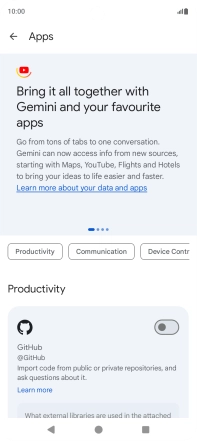 If you turn on extensions, Gemini can interact with other apps and services to give you answers to your questions and respond to your commands for the selected app or service.