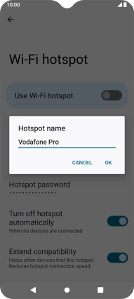 Press Hotspot name and key in the required name for the Wi-Fi hotspot.