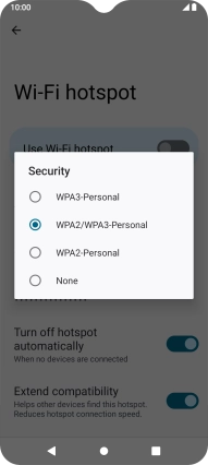 Press WPA3-Personal to password protect your Wi-Fi hotspot.