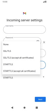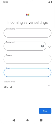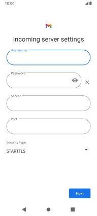 Press the field below "Server" and key in the name of your email provider's incoming server.