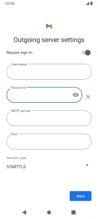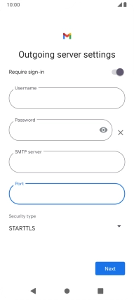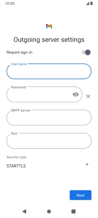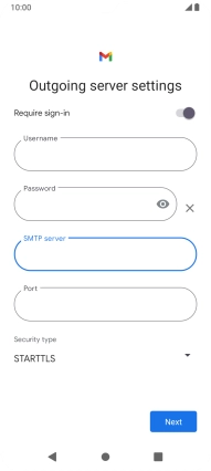 Press the indicator next to "Require sign-in" to turn the function on or off. Please note that if you're using Vodafone's outgoing server, turn off SMTP authentication and leave the username and password fields empty.