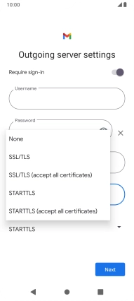 Press the field below "Username" and key in the username for your email the email provider's outgoing server.