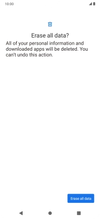 Press Erase all data. Wait a moment while the factory default settings are restored. Follow the instructions on the screen to set up your phone and prepare it for use.