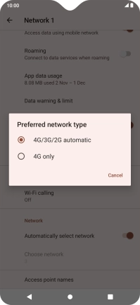 Press Preferred network type.