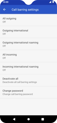 2. Turn call barring on or off