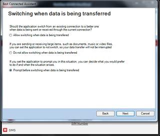 Select setting for switching data connection during active data transfer