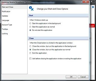 You can select if the USB modem application (Vodafone Mobile Broadband) should start up automatically. Follow these instructions to select setting for automatic start-up.