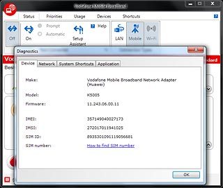Various information about your USB modem is displayed.