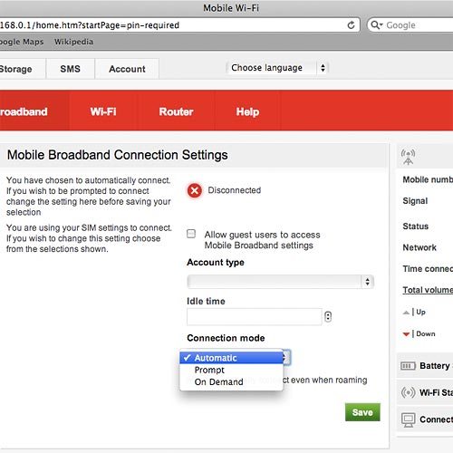 Choose settings for automatic connection - ZTE R205 / Leopard